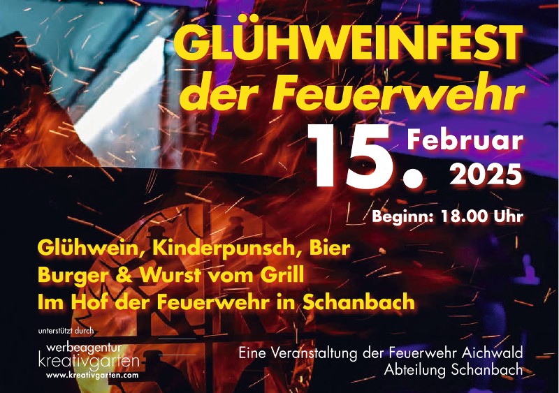 Die Freiwillige Feuerwehr Aichwald Abt. Schanbach, begrüßt Sie ab 18:00 Uhr zum Glühweinfest am Haus der Feuerwehr.