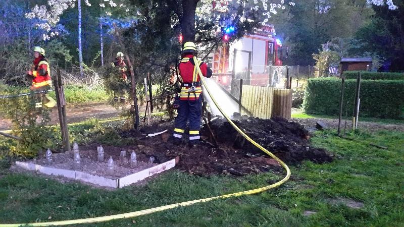 Der Komposthaufen wurde schließlich mittels Dunghaken auseinandergezogen und abgelöscht.